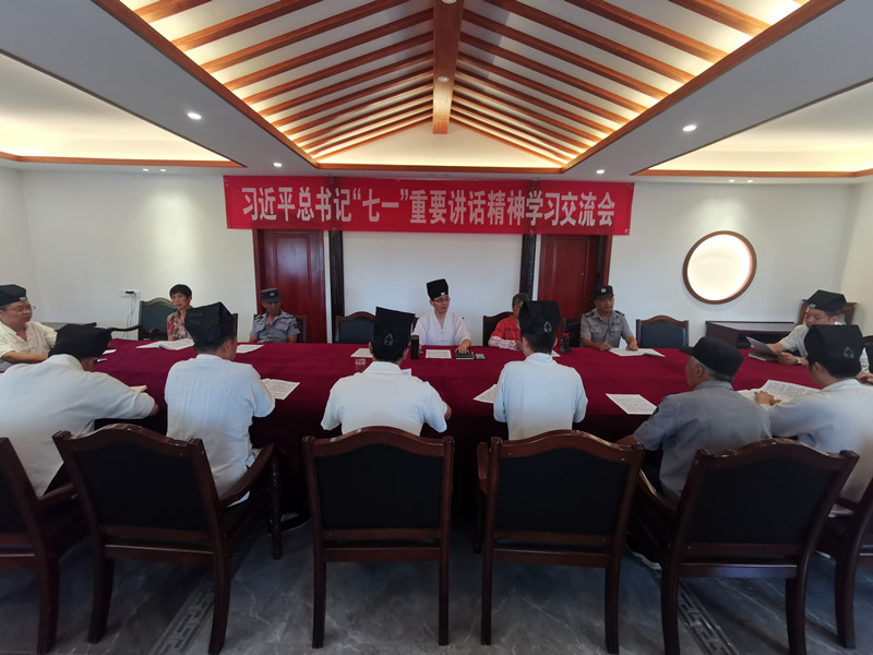 7月13日下午,常州白龙观在天佑阁会议室组织开展了“习近平总书记‘七一’重要讲话精神学习交流会”活动。白龙观广大教职人员及部分工作人员代表近20人参加学习了交流。交流会由常州市道教协会会长、白龙观住持孔新芳道长主持。