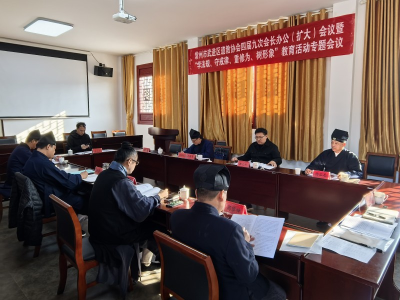 2025年11月21日下午,常州武进区道协四届九次会长办公(扩大)会议暨“学法规、守戒律、重修为、树形象”教育活动专题会议在武进区牛塘青雲山道观召开。武进区委统战部副部长、区民宗局长薛文伟等领导应邀出席会议。武进区道协领导班子成员近10人参加会议。会议由武进区道协会长孔新芳道长主持。 会议传达学习了《中国共产党第二十届中央委员会第四次全体会议公报》精神,中道协《关于“学法规、守戒律、重修为、树形象”教育活动工作提示(第一期)》,以及常州市民宗局《关于转发<省民宗委关于深刻汲取张家港文昌阁火灾事故教训全力做好宗教领域安全防范工作的通知>的通知》的文件;会议部署了武进道教界开展“学法规、守戒律、重修为、树形象”教育活动实施方案。 薛文伟局长在会议上做重要讲话,他指出,一是全区道教界要将学习贯彻党的二十届四中全会精神作为当前及今后一段时期重要工作来做,增强思想政治觉悟,提高自我政治站位,坚持道教中国化方向,做到爱党爱国爱教;二是各道教活动场所要深刻汲取张家港文昌阁火灾事故教训,做好场所消防安全稳定工作,有序部署年前各场所的活动安排;三是要聚焦核心任务,树好道教形象,围绕“学法规、守戒律、重修为、树形象”教育活动中的20个“是否”,加强教风建设,提高广大道教教职人员网络行为规范,进一步增强场所依法管理、规范管理,树立武进道教界的良好形象。 (常州武进区道协) |