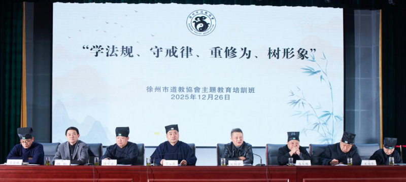 2025年12月26日下午,徐州市道协在汉园宾馆多功能厅举办主题教育培训班,深入学习贯彻中央及省委关于宗教工作的部署要求,对全市道教界开展的“学法规、守戒律、重修为、树形象”教育活动进行阶段总结,并部署推动下一步重点工作。全市道教教职人员、传度弟子近200人参加培训。 本次培训班组织学习了党的二十届四中全会精神,通报了徐州市道教界开展“学法规、守戒律、重修为、树形象”主题教育活动的实施方案,并传达了近期相关重要会议与文件精神。活动旨在进一步加强全市道教界自身建设,提升教职人员综合素质,持续引导道教与社会主义社会相适应,展现徐州道教的良好风貌。 会议指出,自主题教育活动开展以来,市道协紧紧围绕“学、查、改”主线,加强统筹部署,有序推进各项工作。通过多种形式的教育引导,推动全市道教界认真落实相关要求,确保教育活动稳步开展并取得阶段性成效。会议要求,全市道教界要进一步统一思想认识,准确把握教育活动的总体目标和具体任务;要坚持高标准、严要求、实举措,主动作为、自我革新,有力有序推动教育活动走向深入、取得实效;要始终坚持问题导向,在优化内部管理、完善制度机制、强化学习教育上下真功夫、求实效,着力解决影响道教健康传承的突出问题;要层层压实工作责任,各级团体领导班子要切实发挥“主心骨”和“领头雁”作用,带头在学习、自查、整改等关键环节走在前、作表率,教育引导广大道教界人士遵纪守法、持戒修行,始终持守清净朴素、淡泊名利的修道本色,共同维护道教正信正行、清静庄严的良好社会形象。 (徐州市道协) |